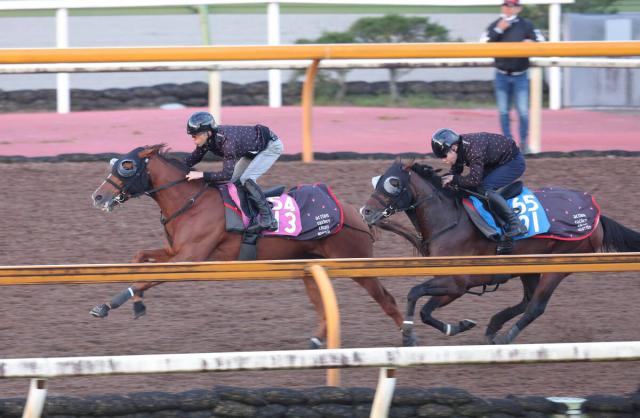 フェスティバルヒル(左)は併せ馬で先着(カメラ・岩川 晋也)