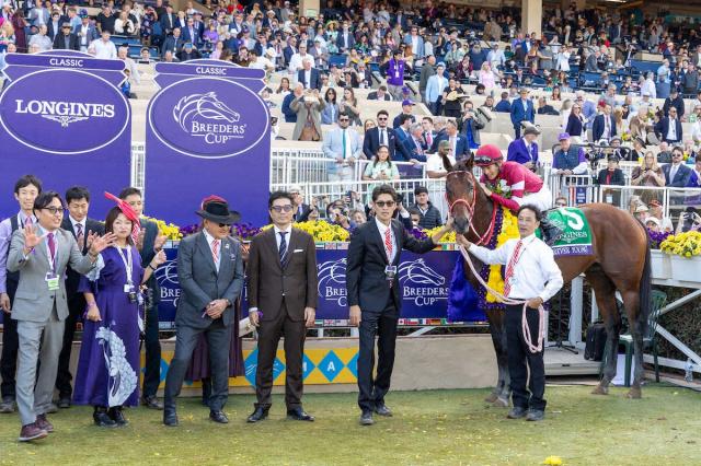 BCクラシックを制したフォーエバーヤングと矢作師(前列左から3人目)ら関係者(C)Bill Denver/Eclipse Sportswire/Breeders Cup