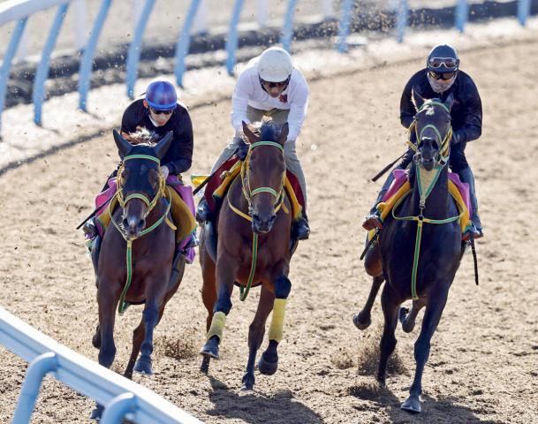 3頭併せをしたシンリョクカ(中、カメラ・荒牧 徹)