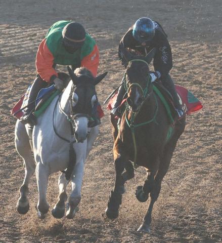 Wコース、併せ馬で追い切るライラック(右)