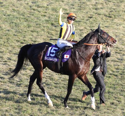 完勝だった。レースまでの手応えを聞かれた川田は「前回(富士S)敗れはしましたか、とても良い雰囲気で前哨戦というのを終えて、馬が良くなることを想定してここに向かいましたけれども、とても素晴らしい状態で連れてきていただいたのを返し馬で感じましたし、レースも彼の気持ちを優先しながら、リズムを取りながら、とてもいい感じで走れていました」と納得の表情。「とても良い動きができていて、西日が後ろから差してますんで、影で後ろの馬たちを確認したんですけど、迫って来られる馬がいなかったんで、勝つことを確信しました」と最後の直線を振り返った。