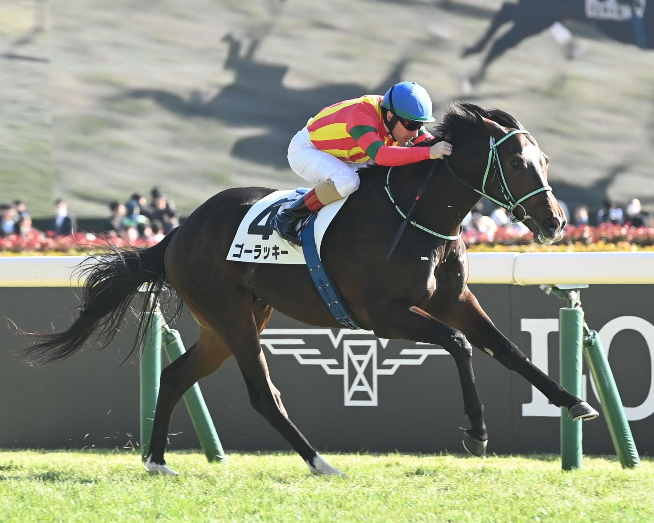 新馬戦を勝利したゴーラッキー(撮影・園田高夫)