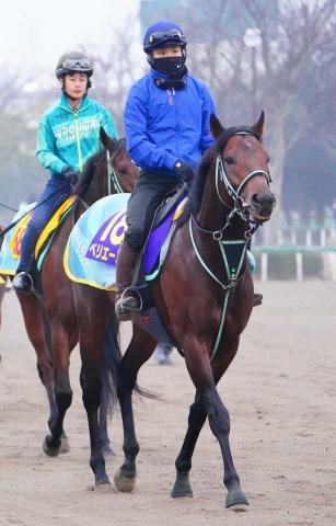 佐々木を背に追い切りに向かうペリエール(撮影・村上 大輔)
