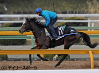 キタサンパイロット(3歳新馬)を2馬身半ほど追いかけながら、直線でエンジンが点火すると力強い脚さばきで加速した。ラスト1F11.7秒の強烈な末脚で僚馬と並入。6F87.0-40.1-11.7秒をマークした。6日も坂路からCWを気分良く周回し、好気配を漂わせた。「いい状態を保っている」と師は前向きに話す。