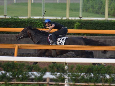 クランチタイムを追走する併せ馬となった。先週18日のCWは単走だったこともあり、平凡な動きに見えたが、今朝は目標がある状態で走ったため、最後まで実にしっかりした走り。