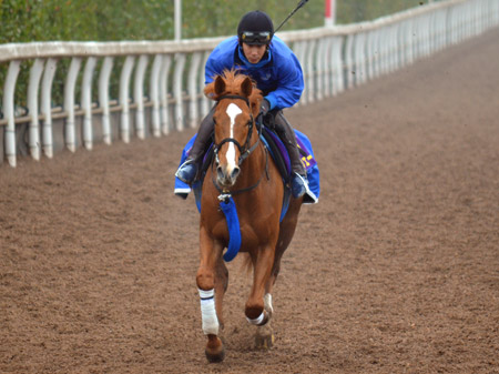 2013年初戦の大阪杯に向けて1週前追い切りを行ったオルフェーヴル(撮影:井内利彰)