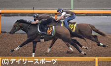美浦Wで僚馬を力強く抜き去るジェベルムーサ(手前)
