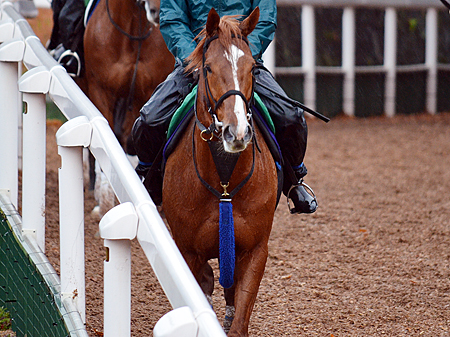 朝一番の坂路馬場。池添謙一騎手が跨った