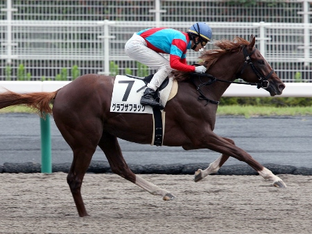 Tapit産駒グラブザフラッグが直線一気でデビュー勝ち