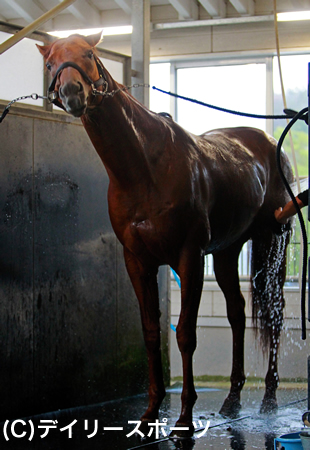 前傾姿勢で、右後肢をクルッと回すような独特なフォーム。調教の動きもさほど見映えはしない。だが、担当の清生助手は「相変わらずのバ